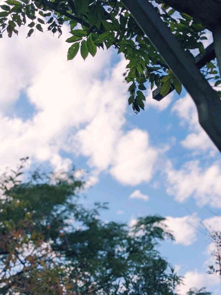 樹木の間から見える綺麗な空