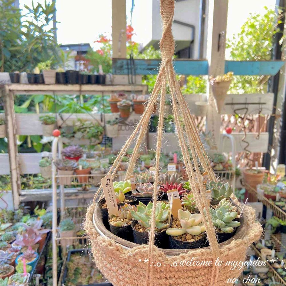 風子ちゃんの編んでくれた子達に植えた多肉達は、この夏も1つも枯れることなく、本当に最強だなぁ〜🥳と思ってます。鉢植えよりも通気良いもんね💕昨年から植えっぱなしコーンアイス見立て寄せᰔᩚドーナツ🍩型のハンギングもᰔᩚ植え替えなし🥳