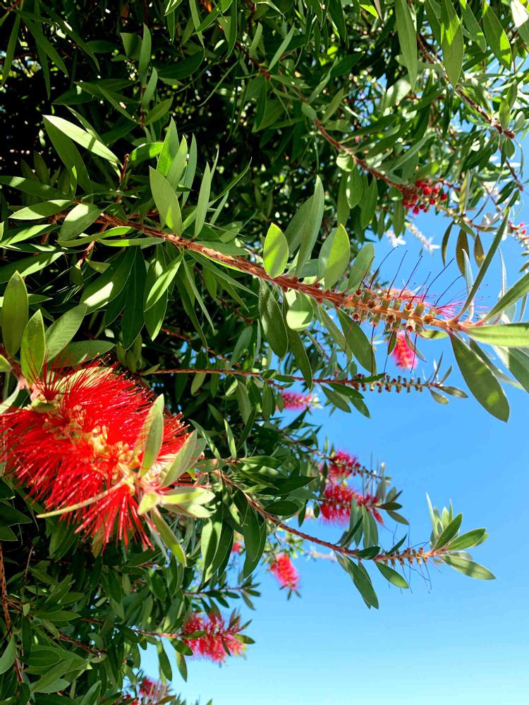 英語ではボトルブラッシュと呼ばれるそうですね。他にピンク、白などがあるそうで。ブラシの木を見ると、タワシに使えないかなぁ🙄といつも思うんだな。
