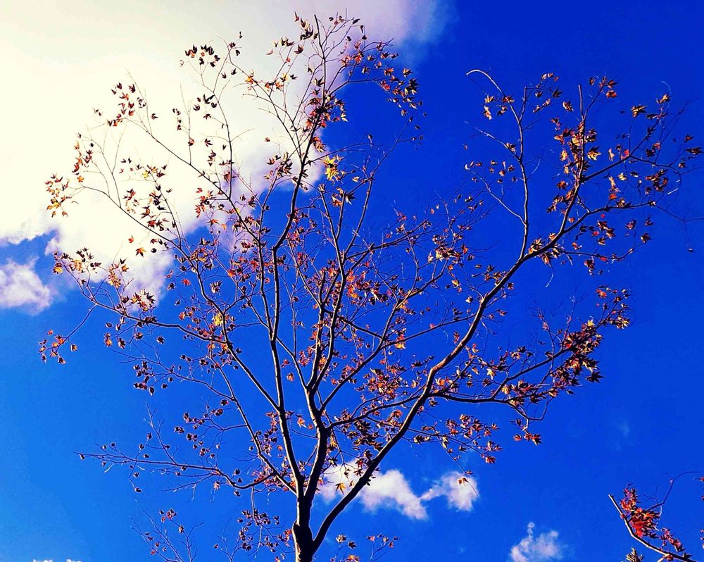 白い雲がバックの葉っぱと青い空がバックの葉っぱ!