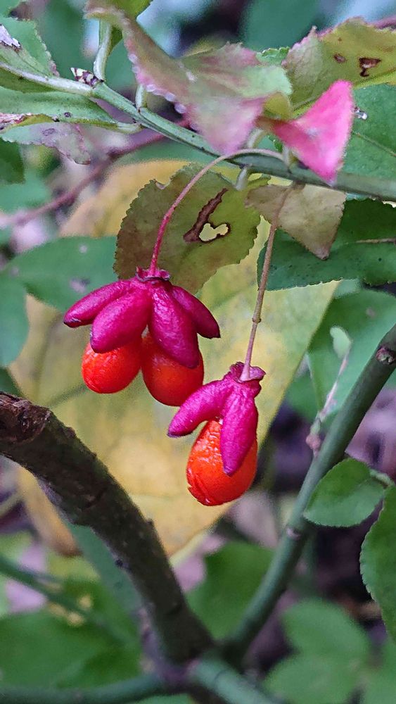 庭を一回りしたら赤い実が成ってて面白い形でした❗