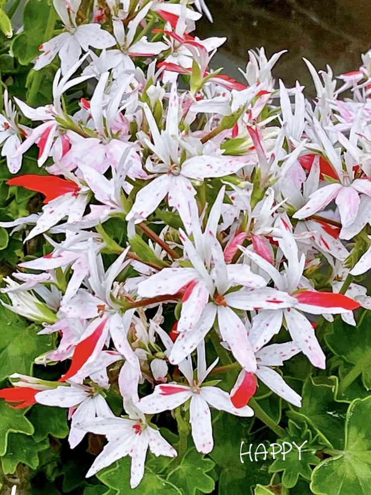 もちろん、こんな星咲きの紅白のゼラニウム、初めてお目にかかりました👀