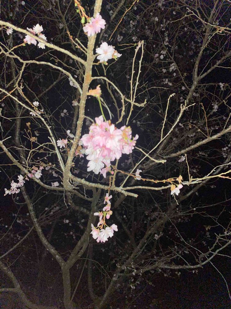 昨夜、地域猫🐈🐈⬛に餌をあげに行って来ました😄この時間に咲く桜🌸を見つけました❣️