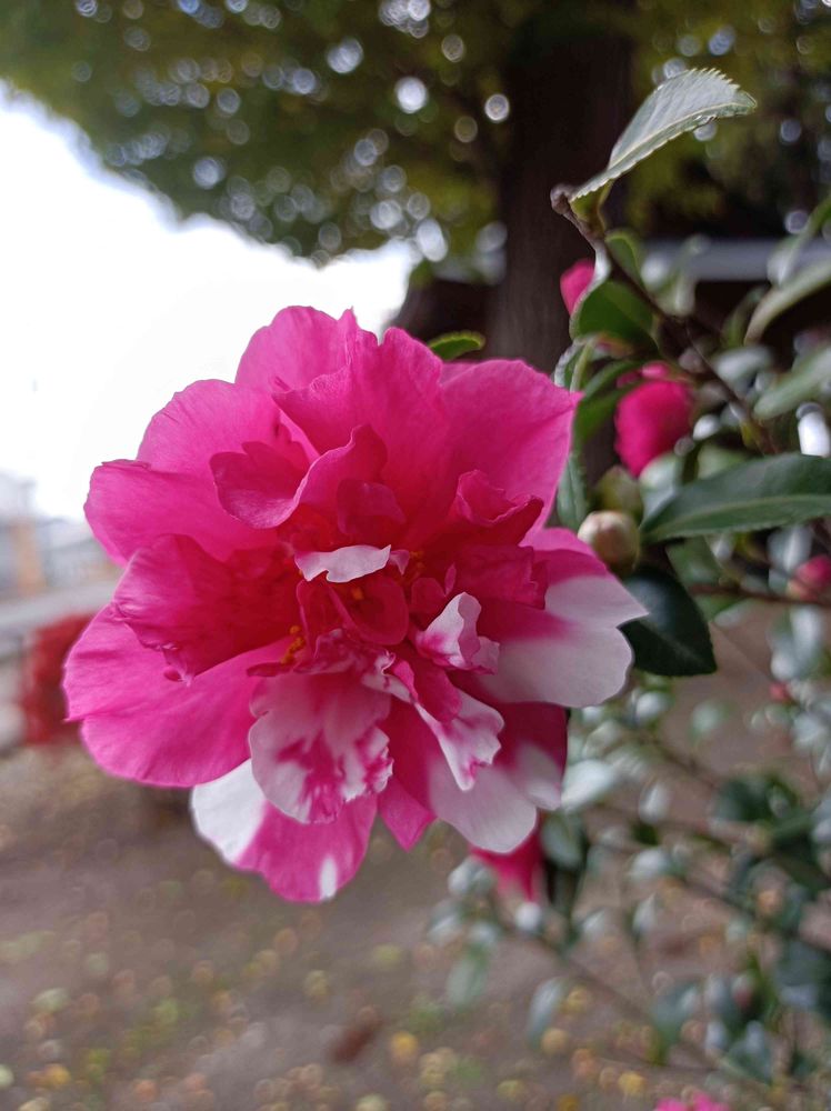 多分、サザンカのような気がする。葉がギザギザしてるのがちょっと見えるのと開花時期🏵️