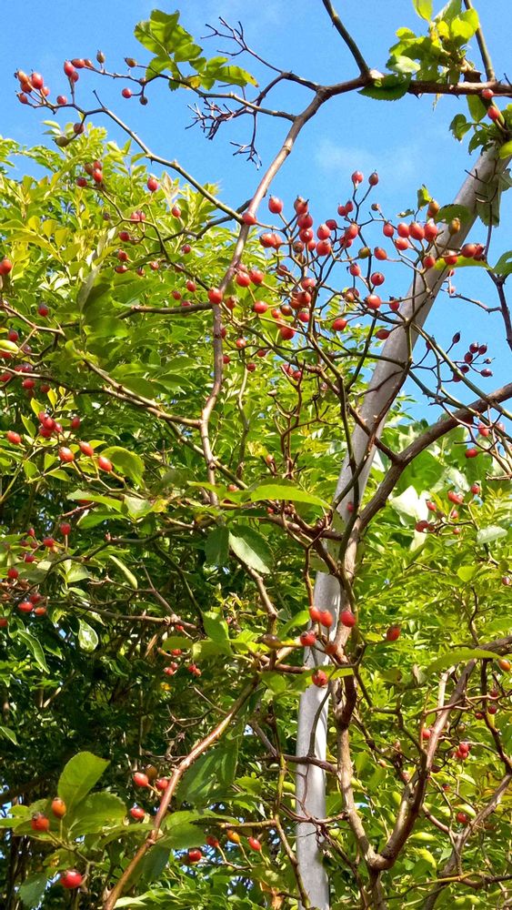 秋晴れの中、庭のローズヒップが可愛いです❤️❤️❤️