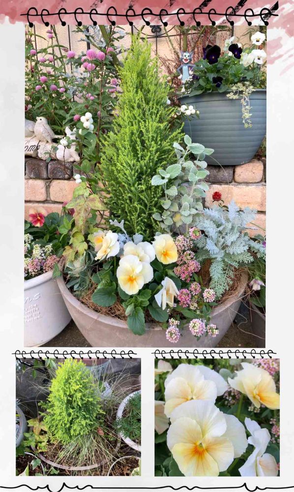 冬に向けて白っぽい寄せ植えにしたかったので淡い色のパンジーと左のヘデラは冬に白くなる白雪姫✨シルバーリーフと合わせました😊🌲
