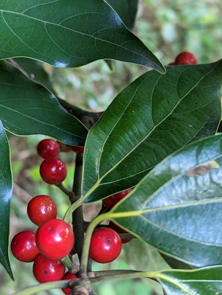 濃い綺麗な葉っぱの緑と真っ赤な実のコントラストが良いねぇ〜💚❤️