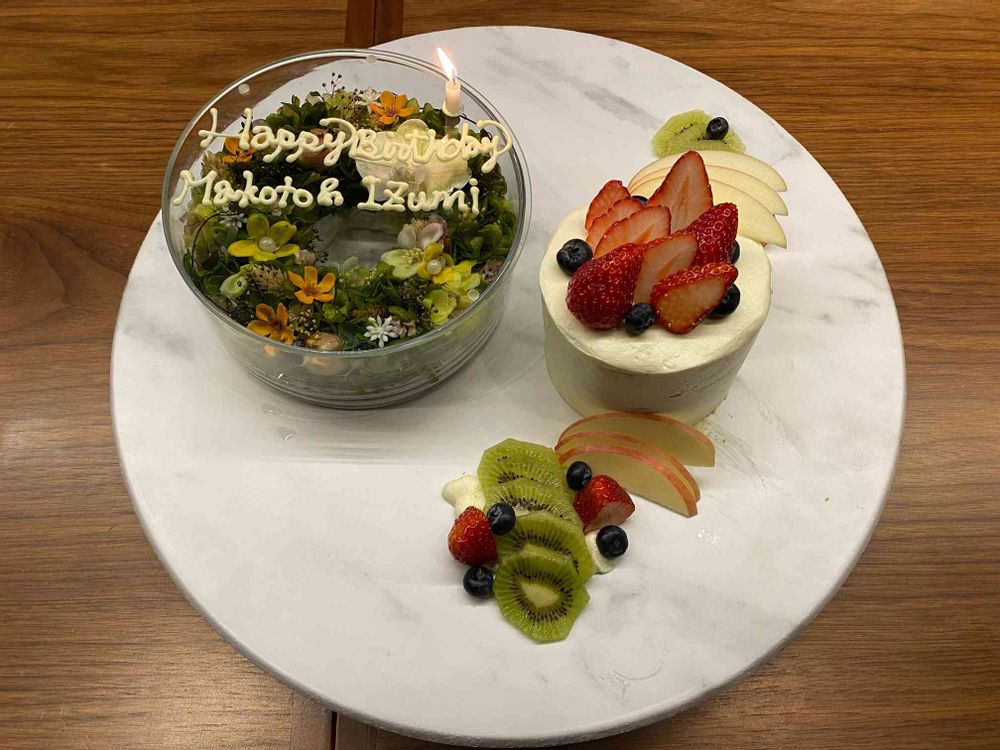 いくつになっても誕生日は嬉しいし、ケーキは美味しいし、お花はかわいいし、感激のひとときでした🎶