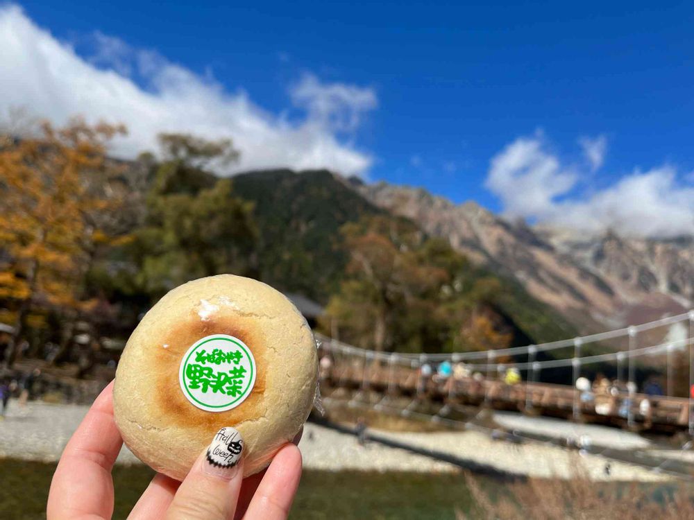 景色を見ながらのおやきは美味しい