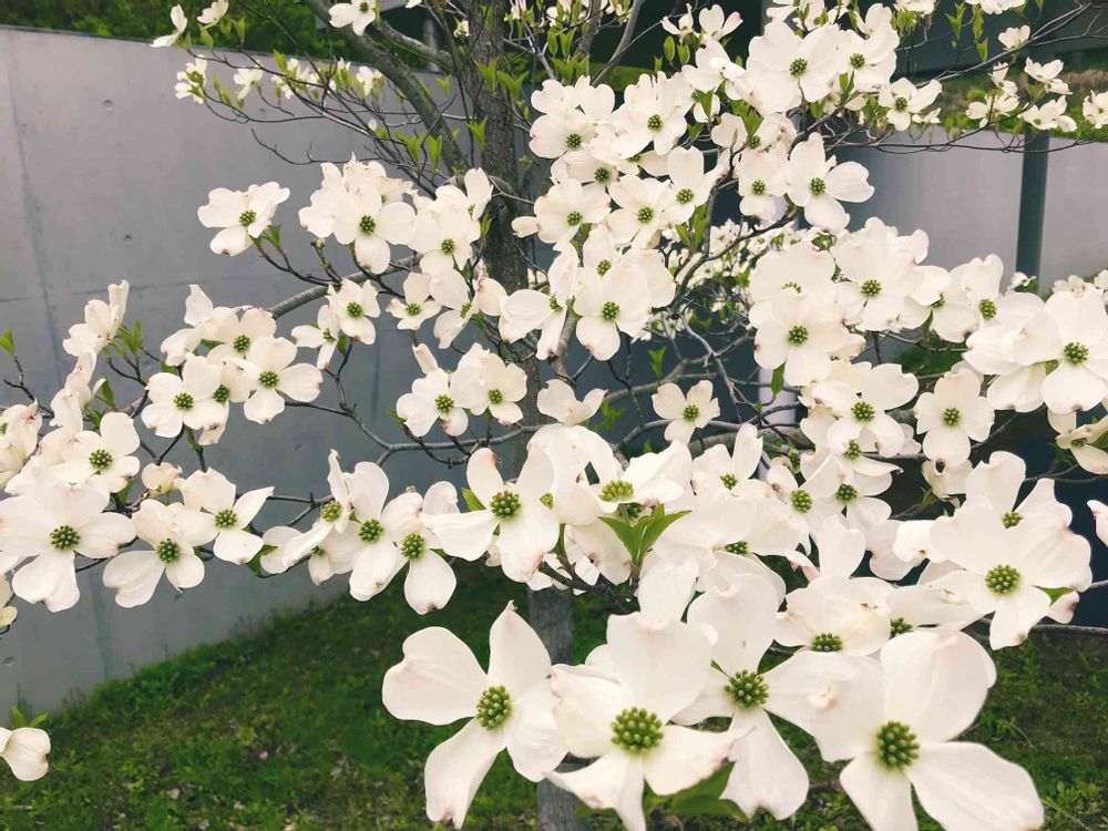 ハナミズキの白いお花を見るとキュンとします。