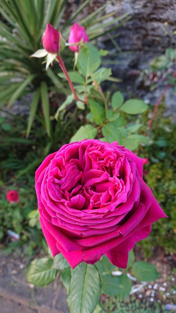 地植えにしたらゆっくりだけれど成長してきて、まだ後ろに蕾も控えていて🎵