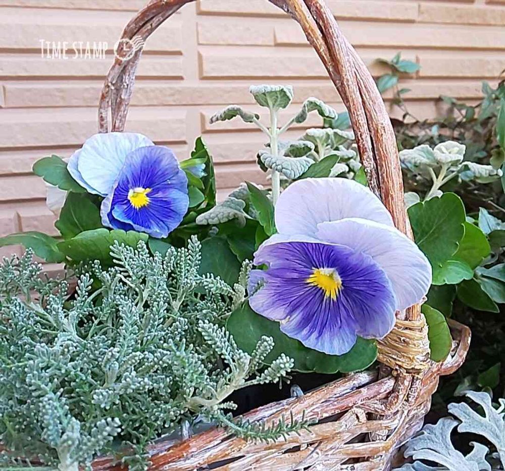 💙パンジーさんとシルバーリーフの寄植え、ブルーのパンジーなのに冬の雰囲気で仕上げていらして…とってもキレイですね💙💗💙