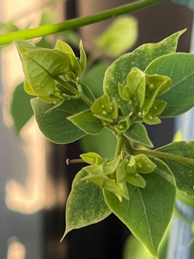 ベランダでこれから成長しようとしているブーゲンビリアの白で蕾?です🧐😊💕