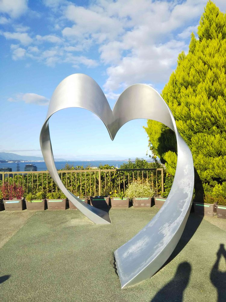 『恋人の聖地』と呼ばれる場所にハート型のモニュメント。(ブライダルの)桂由美さんの名前が刻まれていました。向こうに見えるは琵琶湖です☺️🌿