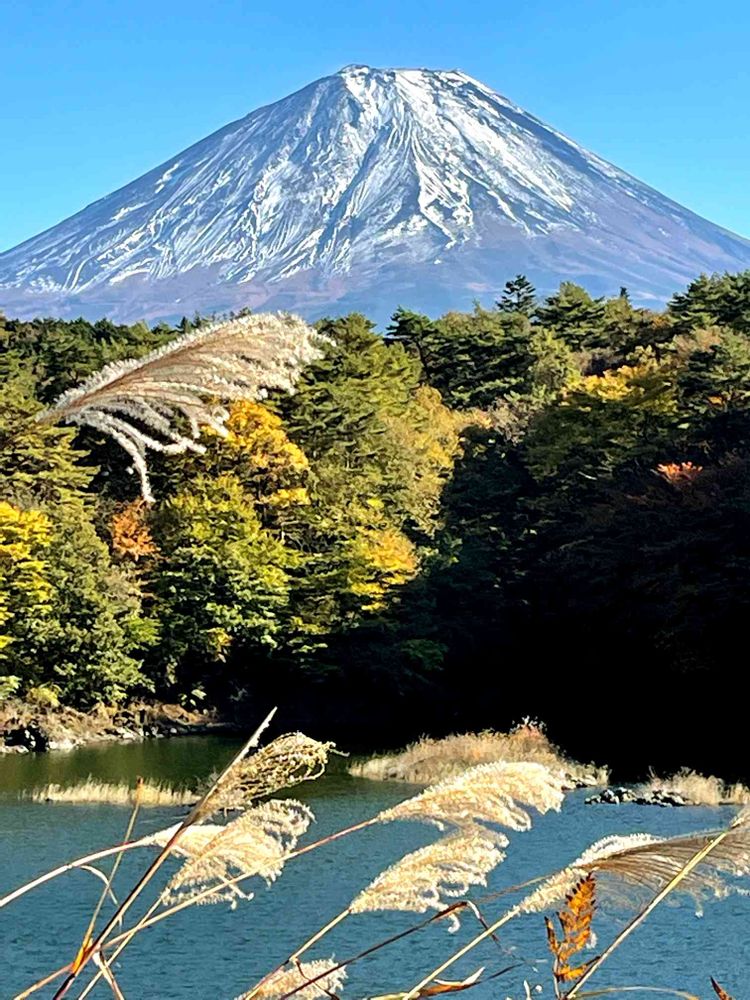 富士山とススキ、まるで絵はがきみたいに素敵です😁(^-^)💕やはり富士山は雄大ですね😃