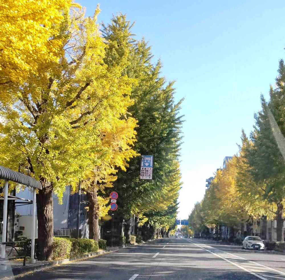 ちょうど銀杏並木のこの色合いが私は好きなので、たまたま車内から撮りました💛💚💛💚