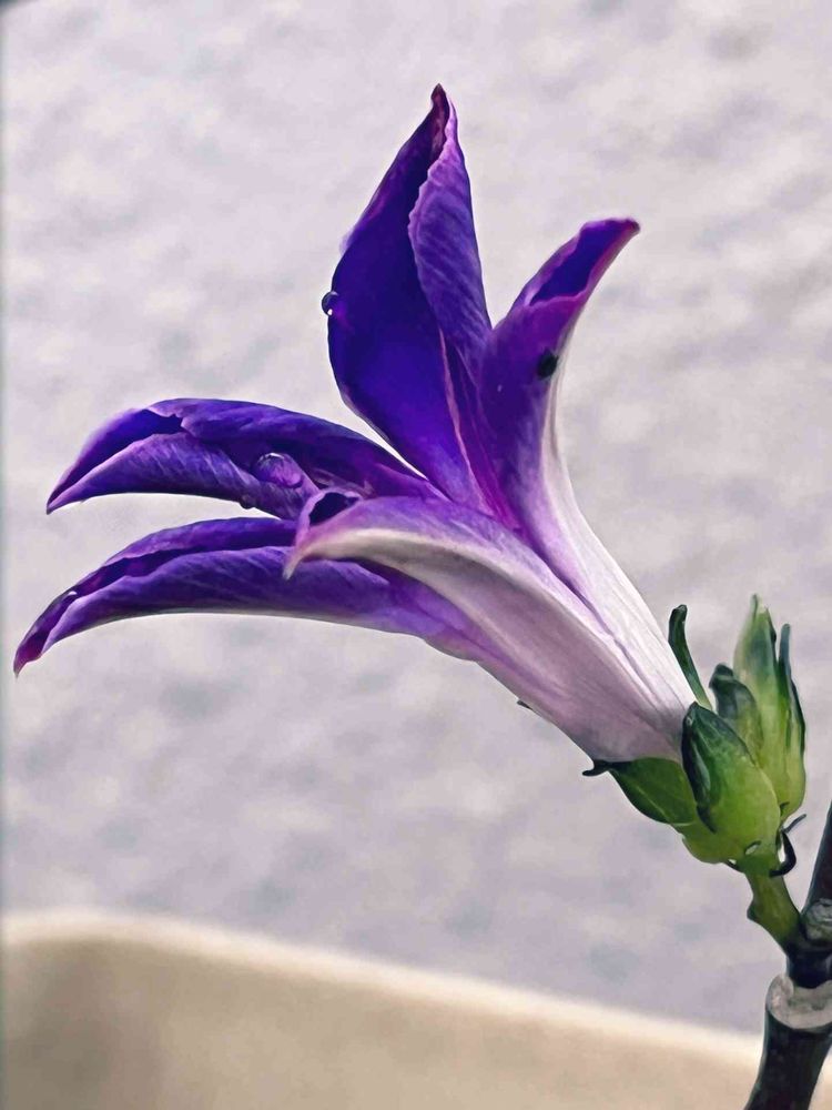 つると枯れた葉を片づけたとき 蕾を見つけて そのままにしといたら 咲いてたよー。 ウレピ。