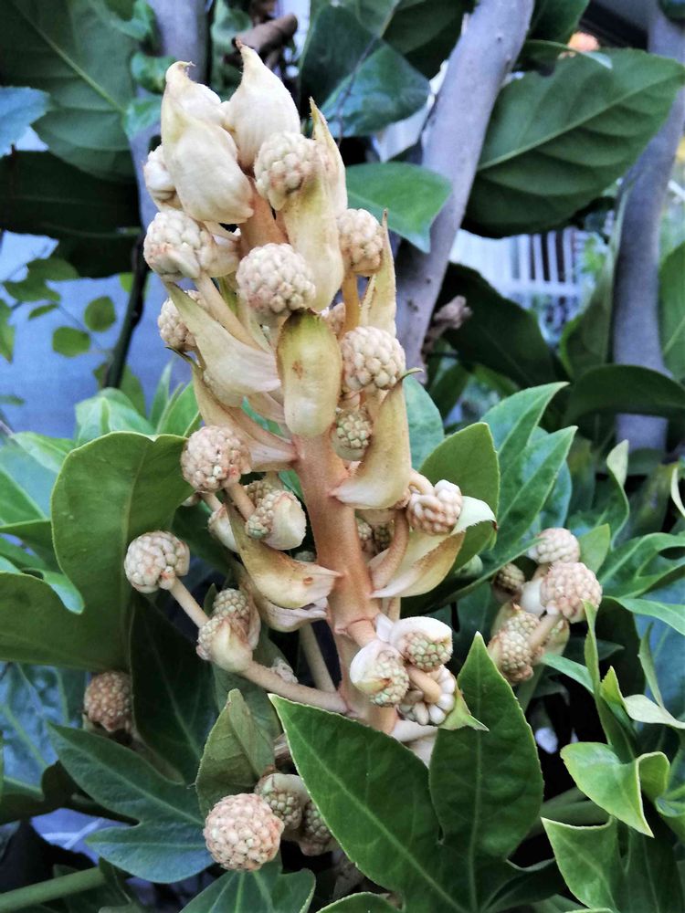 昔,自宅の庭木だったヤツデの花に,アブとハエがたくさん寄ってきたことを思い出しました。この花の成分を調べれば,昆虫誘引剤ができるのではないかと皮算用したことが懐かしいです。