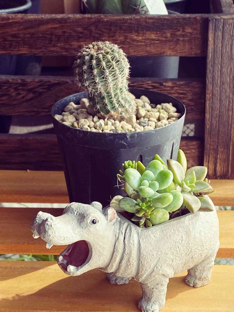 カバ🦛の小さな鉢に入った多肉の寄植えは久々に行った雑貨店で(σ´∀`)σゲチュ