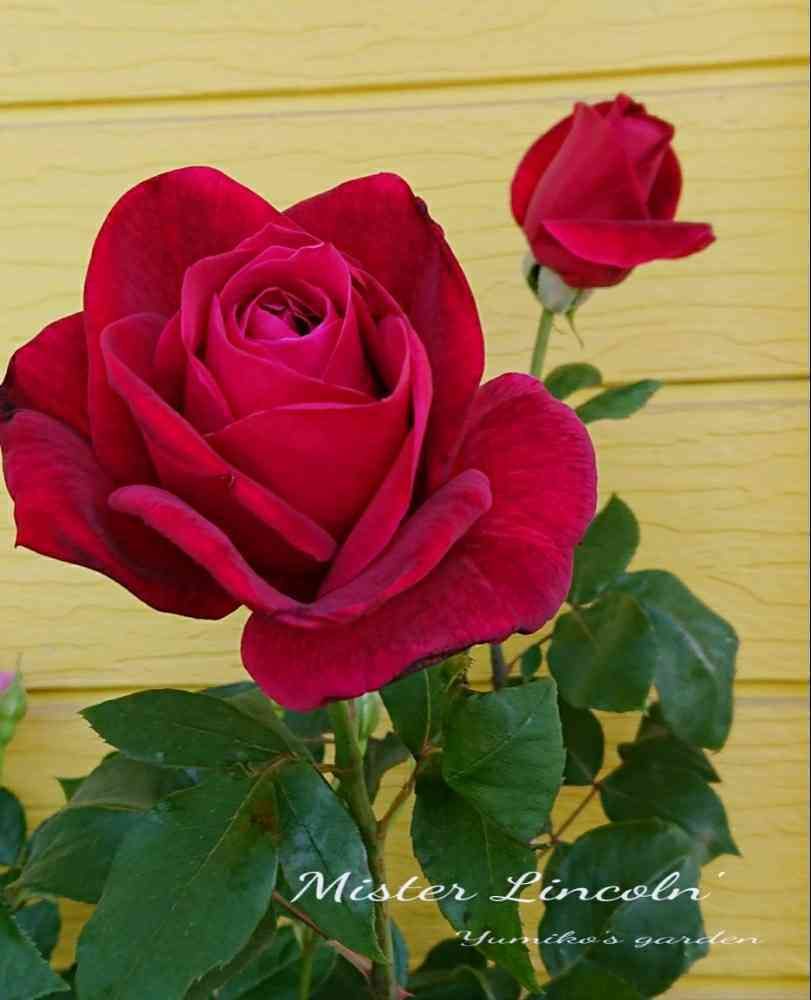黄色い壁に深紅の花色と照り葉の彩りが素敵にひきたてあってますね(✿︎´ ꒳ ` )♡︎
