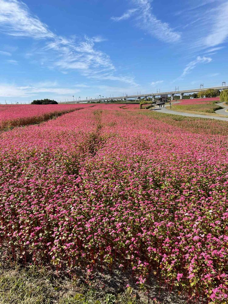 見渡す限りの、見事な赤そばの花、素晴らしい‼️