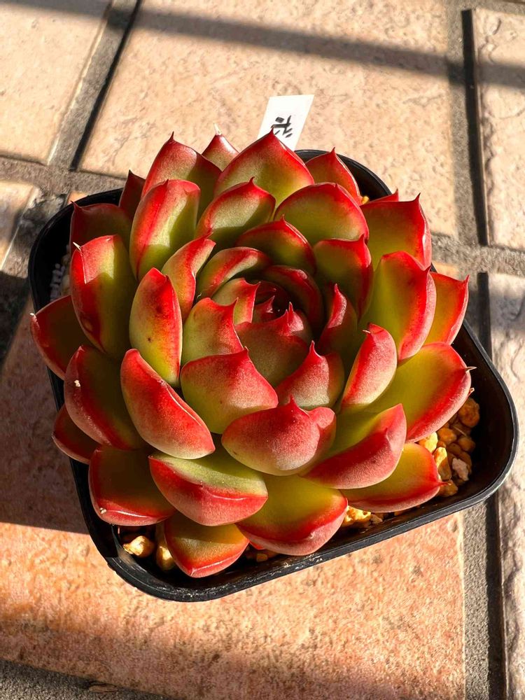 我が家でいちばん赤くなっているエケベリア代表ボールさん。