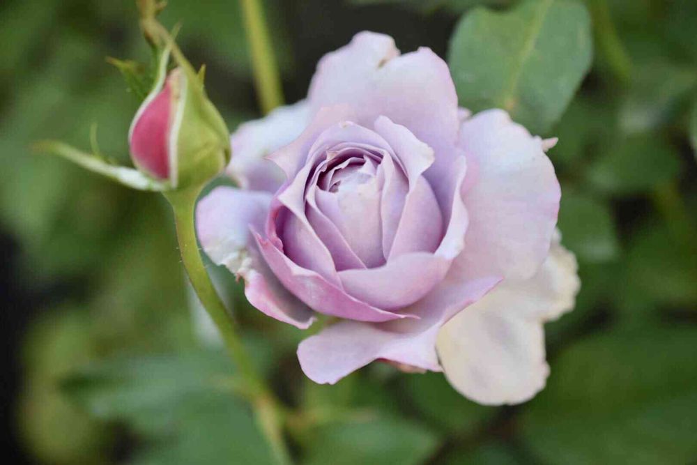 濃いピンク色の蕾から、藤色のバラが咲く不思議💜