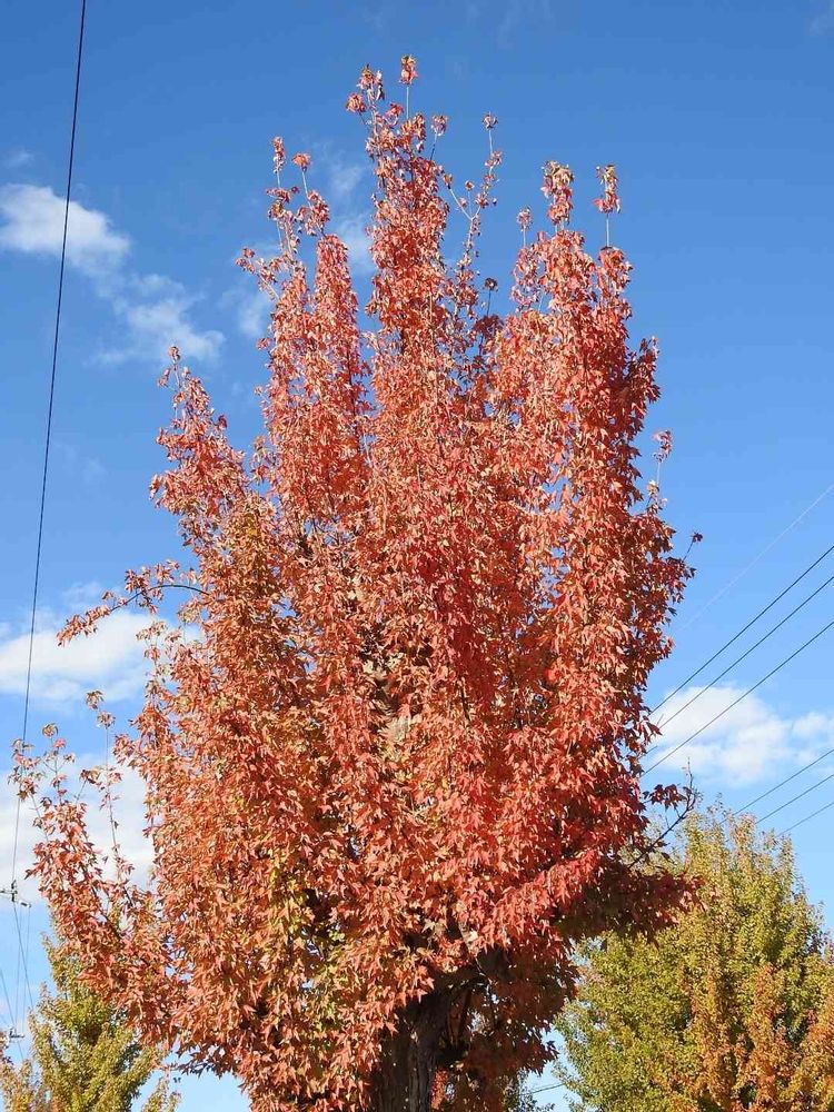 コスモス畑脇の県道の街路樹が真っ赤に紅葉して青空に映えてとても綺麗でした🌿🍀🌱