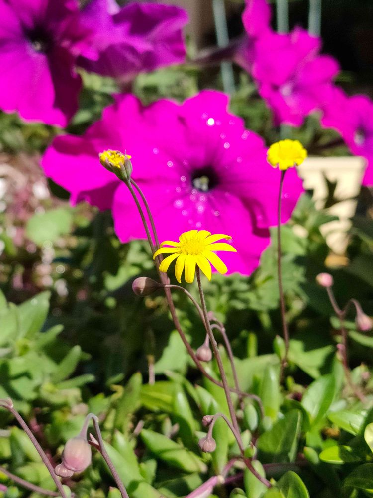 ルビーネックレスのお花が、グーン⬆️と茎を伸ばして、ペチュニアさんと共演です🥰✨