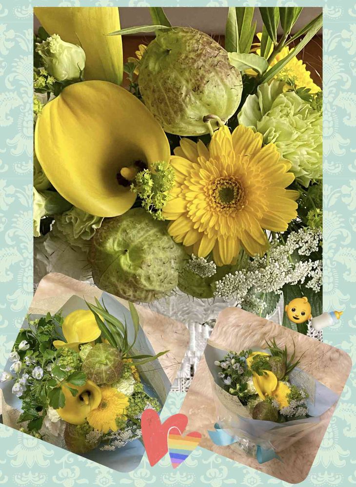 ビタミンカラーの素敵なブーケで私は初めて実際に見たフウセントウワタが入っていました💛💚💛🟢