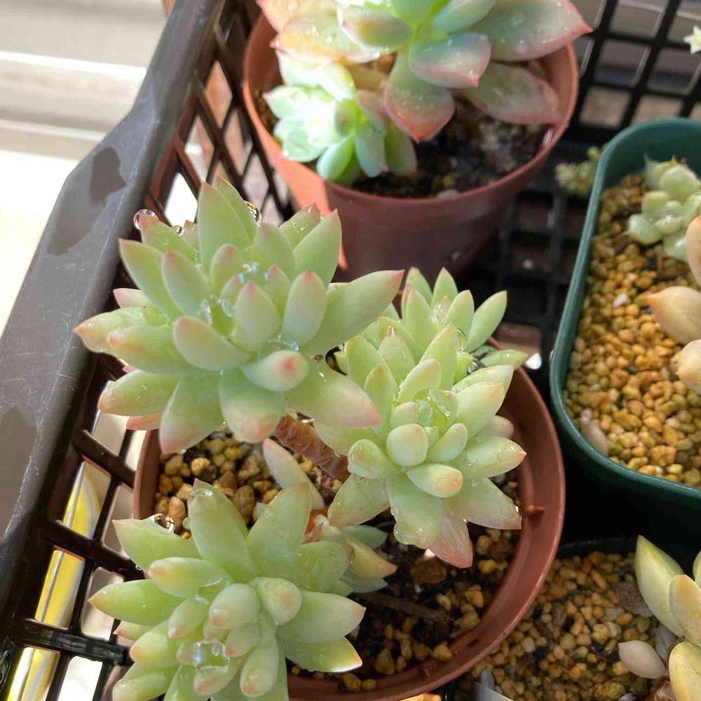 花屋で衝動買いした多肉の寄植えを何の知識もなく部屋に飾って徒長させて、慌てて調べ始めたのが多肉にハマったキッカケです。 超〜初心者です。2020.4〜