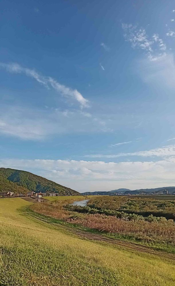 川散歩🎵青空のもと心地よい微風になぶられながら土手の上を歩きます。🤗