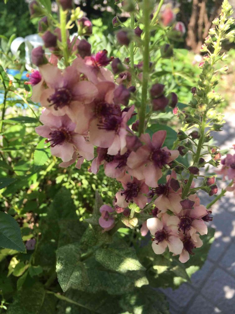 種から育てたバーバスカムの最後の生き残り。地植えは全て消失。寄せ植えの中のが辛うじて生きてます。独特な色です、逆光ですみません、変なものが映りこんじゃうんで‥