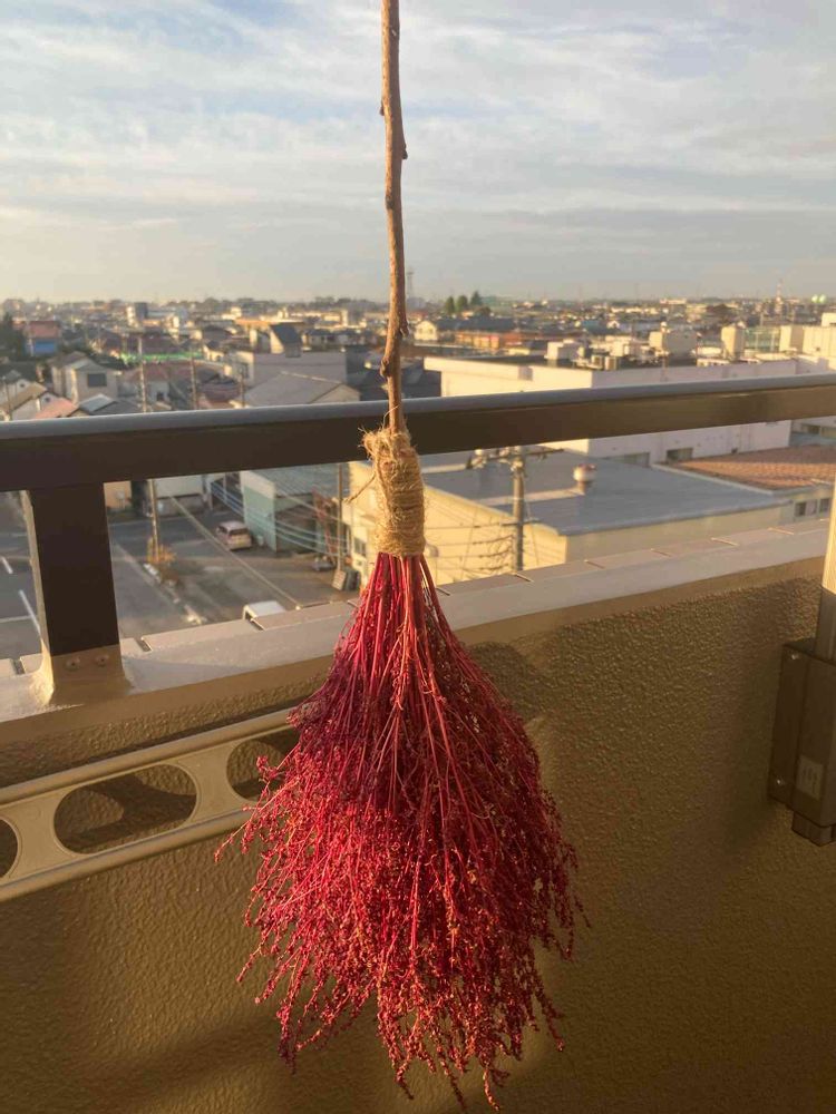 普通のミニ箒🧹を作ろうと育てていたらGSの花友さんが赤い箒を作っていて💕