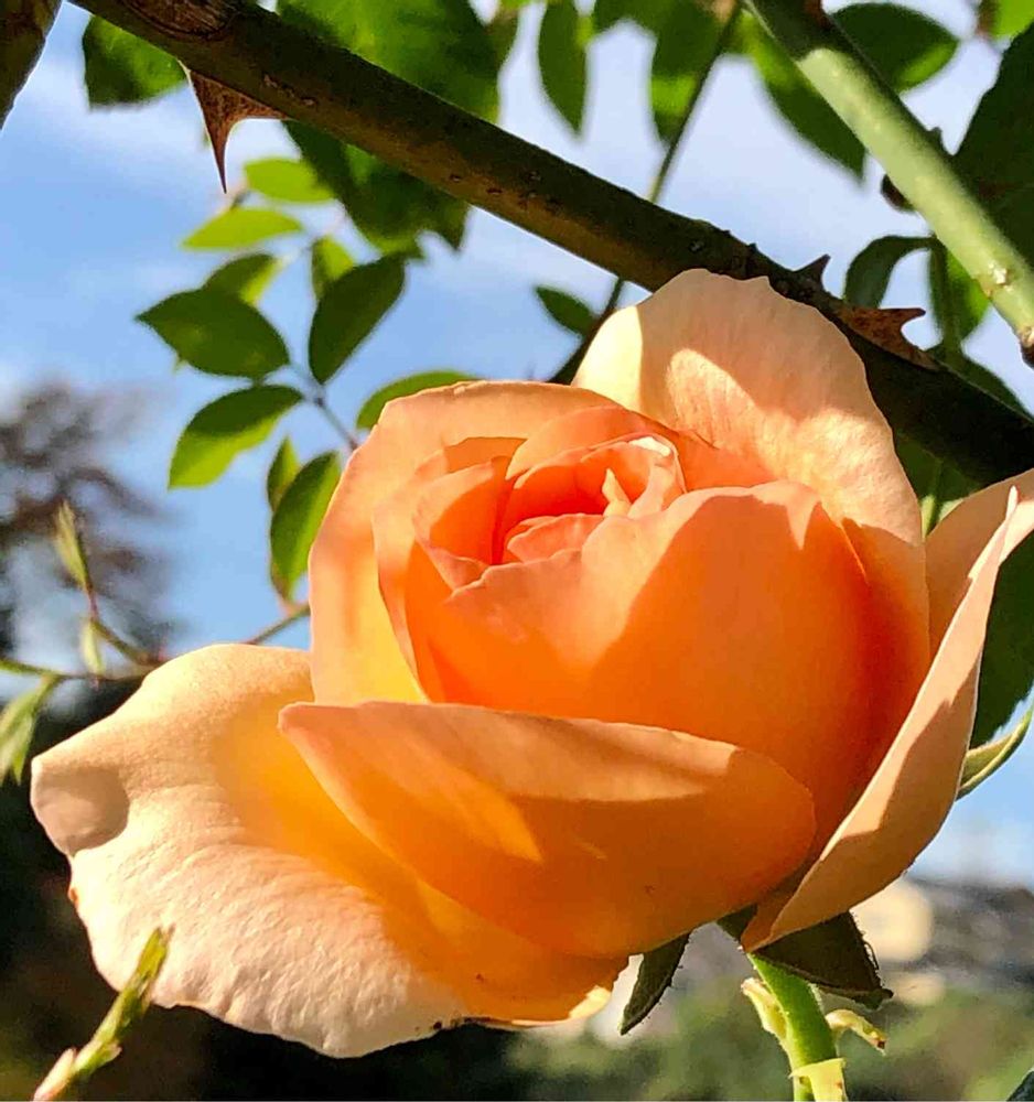 日差しを浴びながら、あんず色の🧡ロイヤルさんが咲いています✨