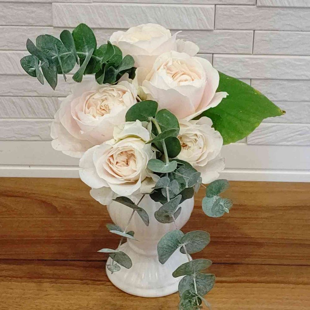 切り花のシフォンベールっていうバラです。ほのかにティー香りかな?という感じです。