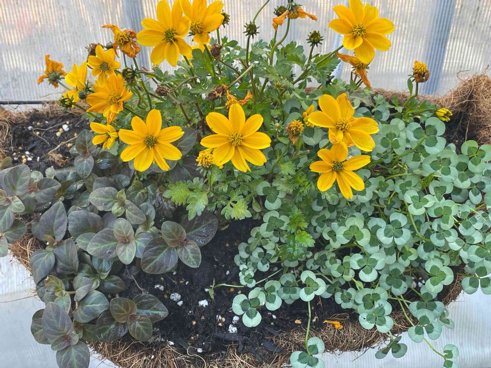 ビデンス🌼とクローバー🍀だけにしようかと思ったんやけどいまひとつでウチにあったリシマキアをプラスしちゃった〜🎶