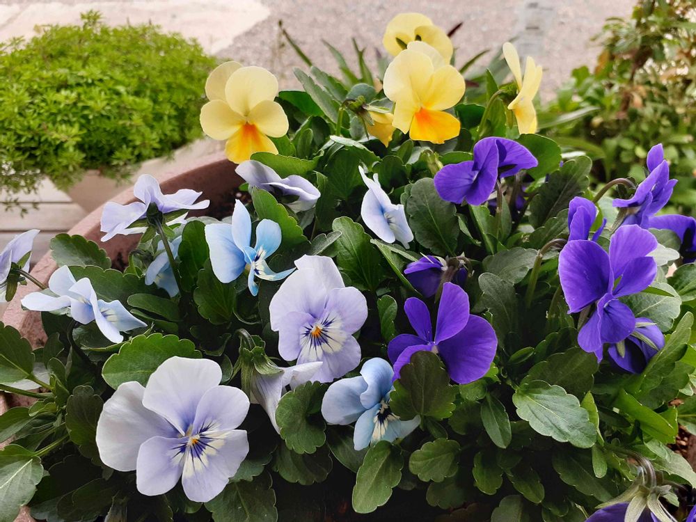 路地栽培 善財ファームさんのビオラ💛💙💜3色植え