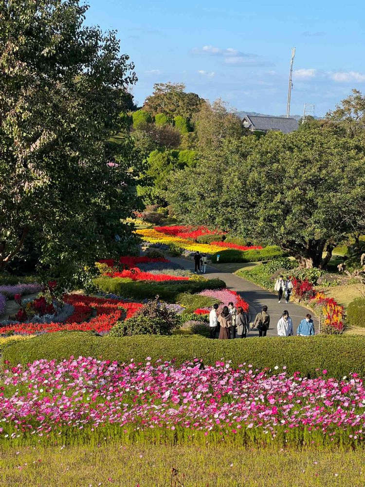 コスモス、赤いサルビア、黄色&オレンジの大輪のマリーゴールド、ブルーサルビア、薄紫の千日紅などなど、とても美しい風景でした。