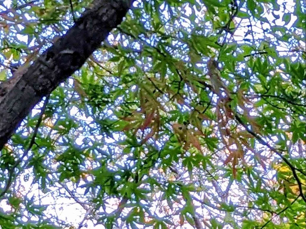 庭の奥の大木になって来たイロハもみじ…中ほどは少し紅く…🍁