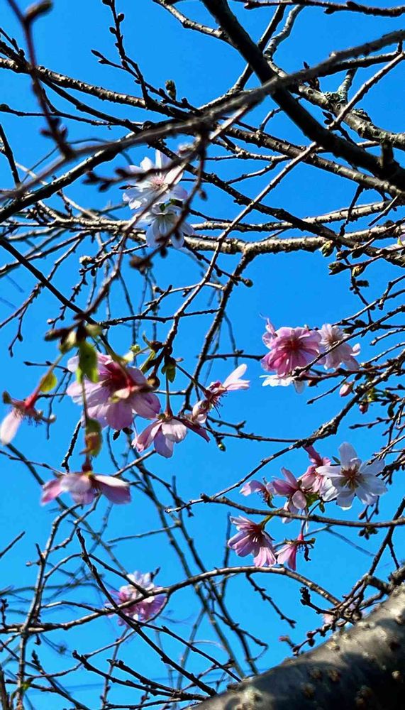 🌸は枝の先にちょっとだけ咲いていて、春の🌸のように華やかさはないけれど、撮りにくくても好きです。😅