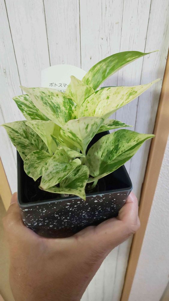 ホムセンで気になってたポトスを迎えました。マーブル模様が白くてキレイです。