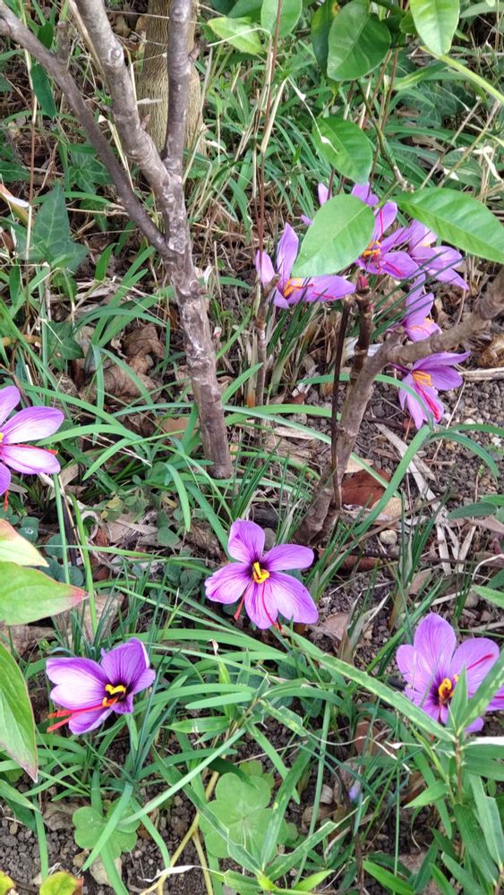 我が家の近くにも昔〜し昔漢方薬局のお爺さんが植えたというサフランが毎年咲くんですが、「咲かないなぁ 咲かないなぁ」と思っていたらある日突然咲いてます