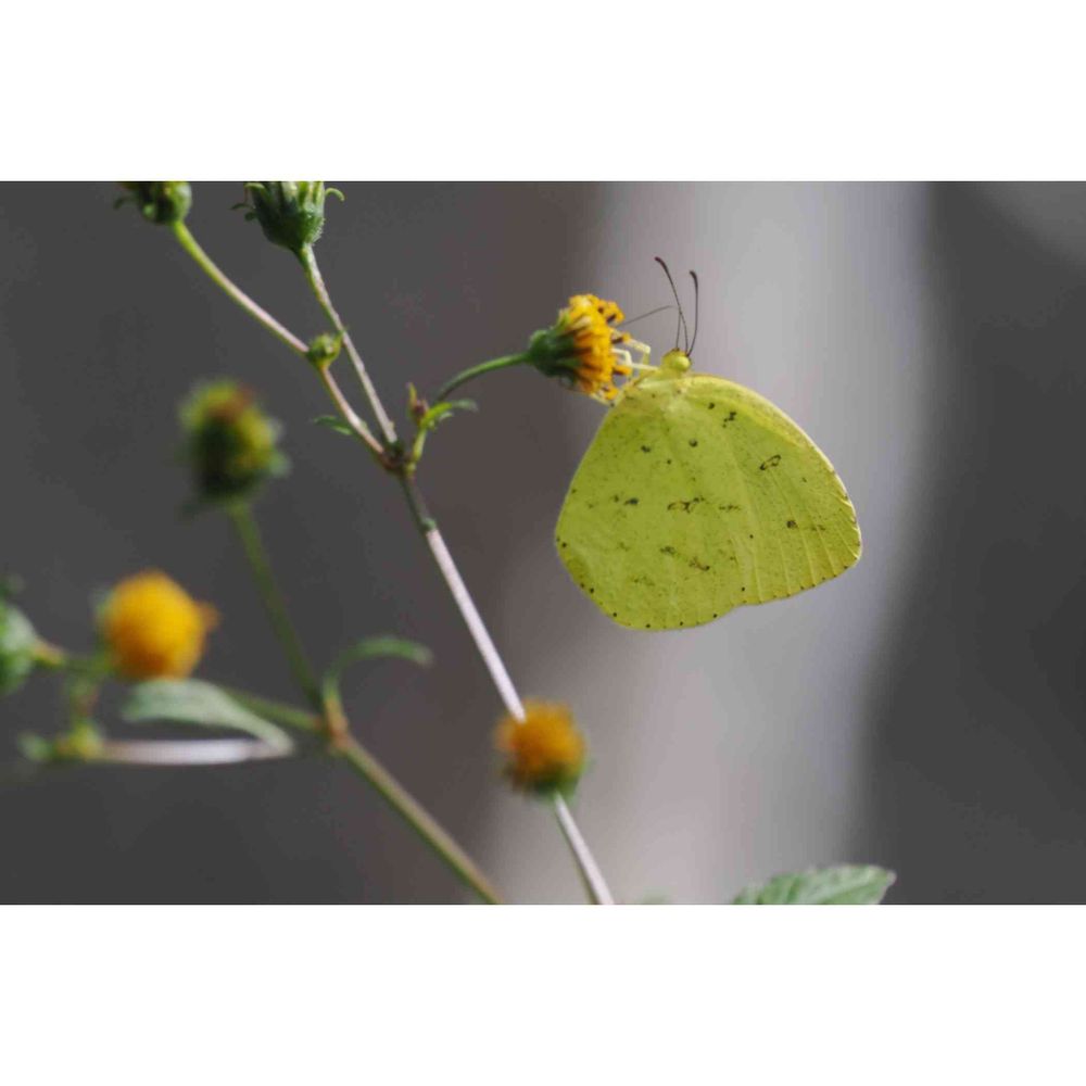 林道に入る前の道端に咲いていたセンダングサに止まるモンキチョウ...