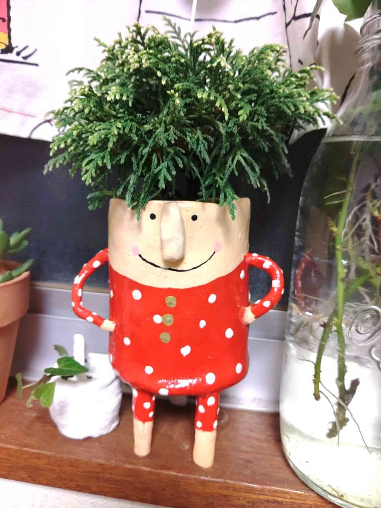 ほんとこの子が目に入るとニコニコ😍しちゃいます❤手作りだと尚更愛着がわきます🪴