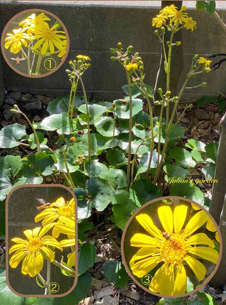 皆さんのpicにツワブキのお花が咲いているのを見てうちのはと思って数日 ようやく咲き始めました🌼💕