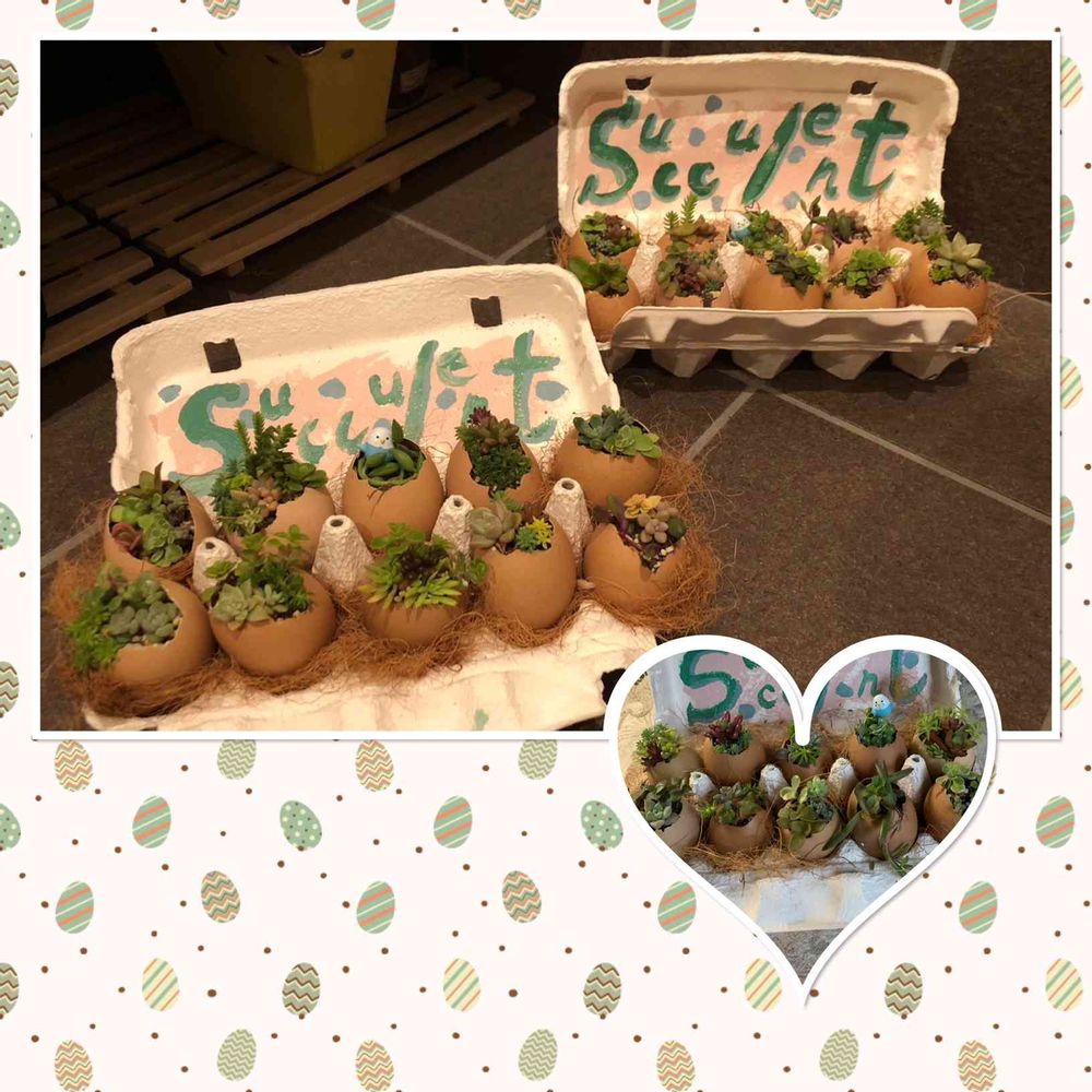 実家にも、卵殻寄せ植えをプレゼントしました。が、以前母にプレゼントした多肉の手入れをして欲しいと言うので、1時間程手入れをしました。…(^^;)