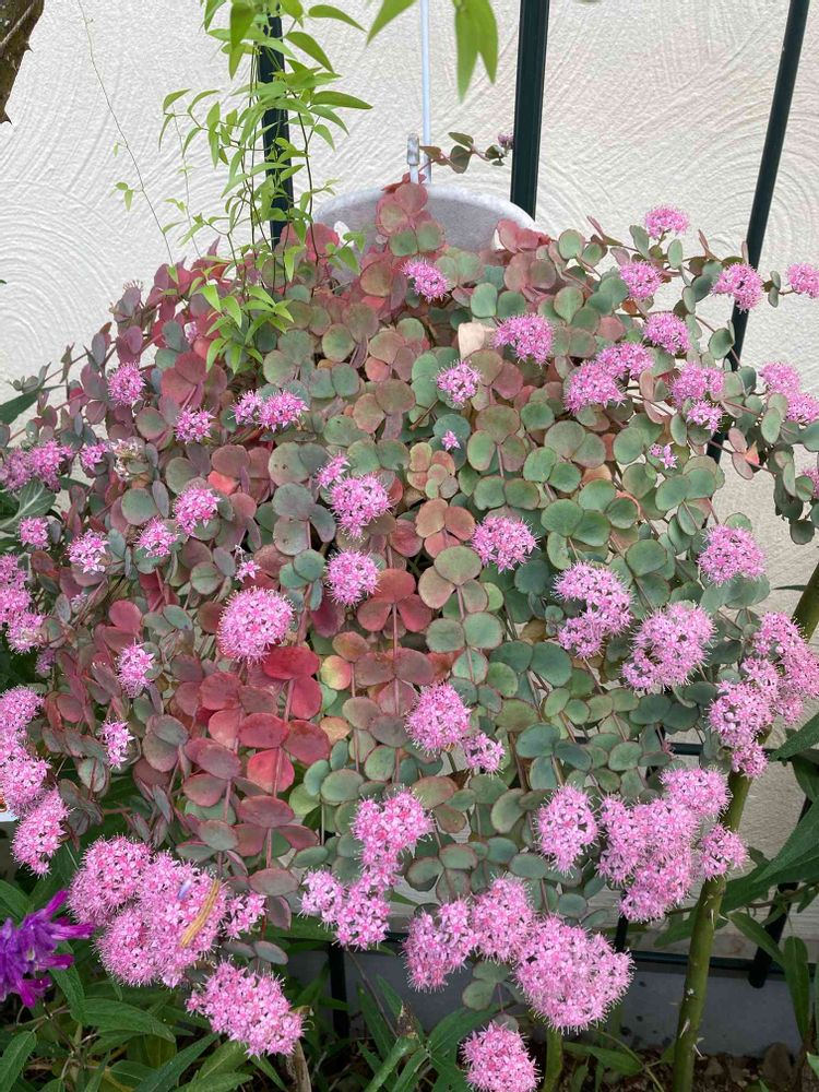 こちらも同じミセバヤさんですがハンギングに植えてあるので皆さん同じ方向を向いています。