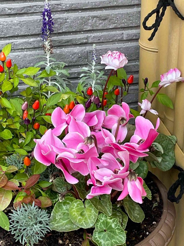ようやくシクラメンを寄せました(。⊿°」∠)モッモッ💦パンジーはポットのまま😥