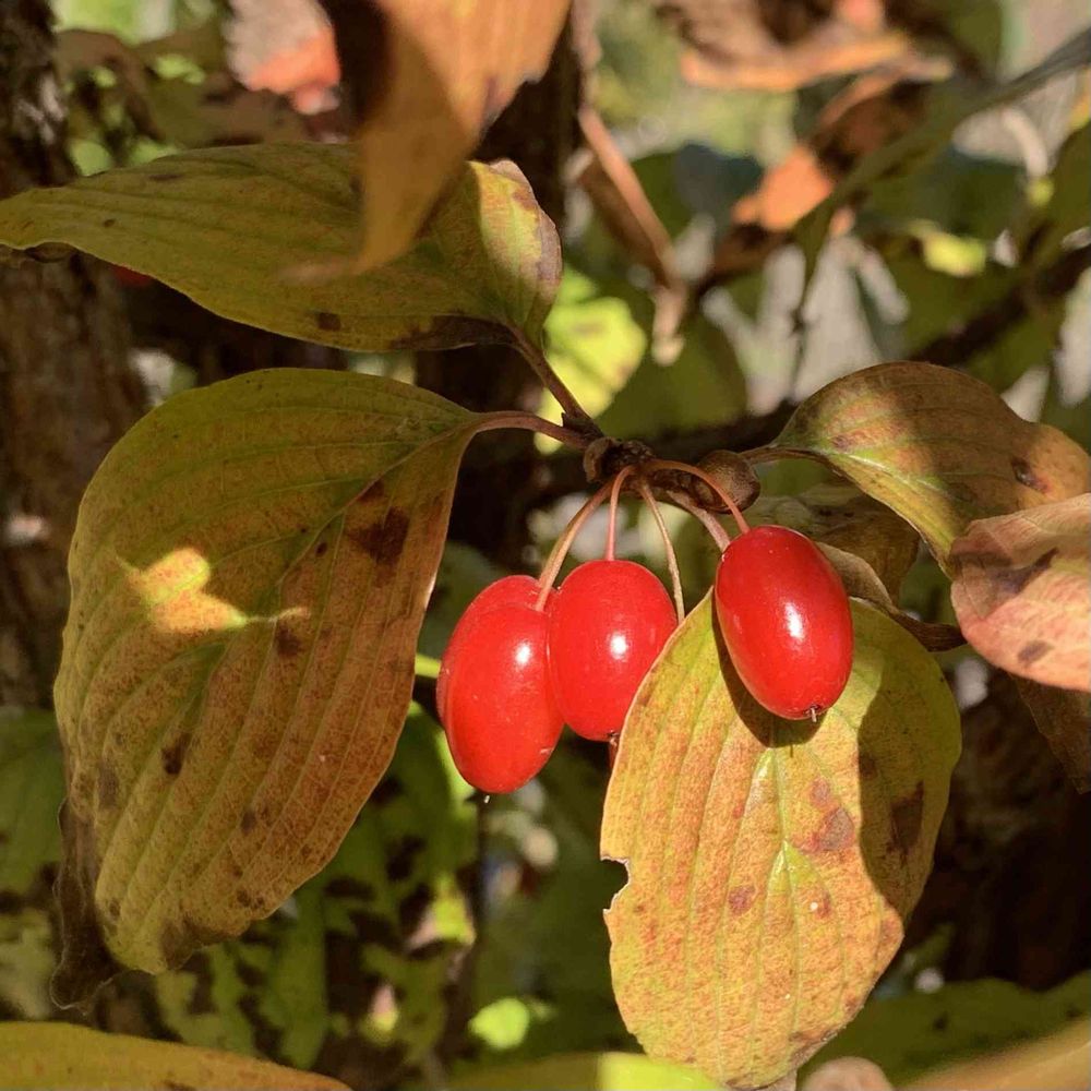 秋の柔らかい陽射しにツヤツヤ輝く赤い実🔴